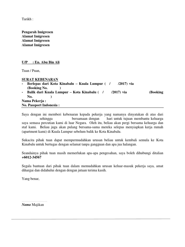 Surat izin adalah salah satu surat yang berisi tentang keterangan bahwa seorang yang. Contoh Surat Kebenaran Lawatan Ke Luar Negara Contoh. 20 Contoh Surat Keterangan Kerja Resmi Paling Lengkap.